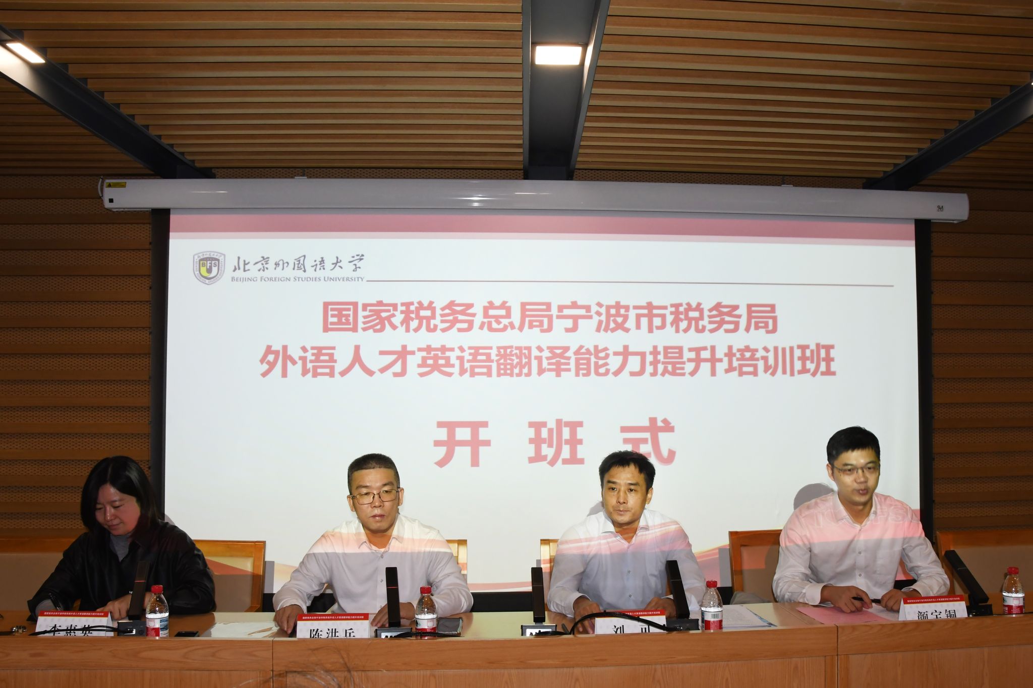 10月13日上午,国家税务总局宁波市税务局“外语人才英语翻译能力提升培训班”开班式在图书馆三层会议室举行。国家税务总局国际税务司外事处(港澳台处)处长刘可、宁波市税务局国际税收管理处处长颜宝铜,北外继续教育学院党总支书记陈洪兵出席活动。开班式由继续教育学院团体部主任李惠英主持。